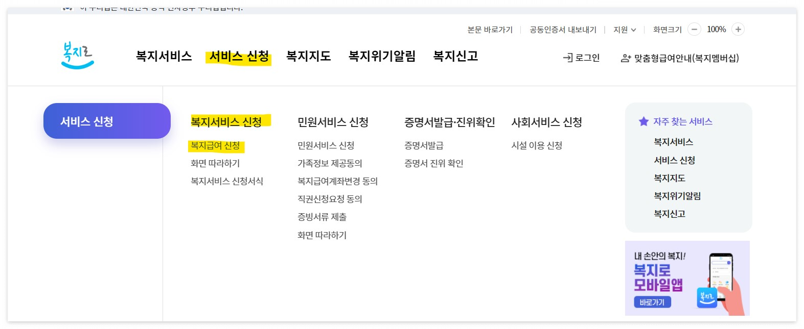 ✅ <복지로> 사이트를 통한 온라인 신청 경로