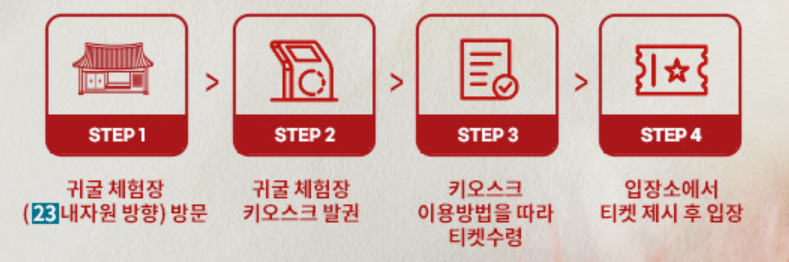 1️⃣ 한국민속촉 내 귀굴 체험장 키오스크에서 발권